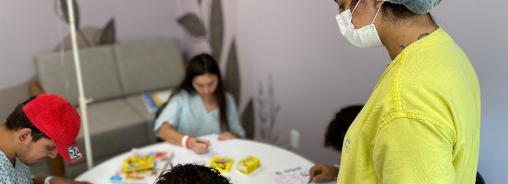 Como parte desse processo, o HEF realiza diversas ações terapêuticas que contribuem diretamente para o bem-estar emocional dos pacientes. Entre elas estão a musicoterapia, a pet terapia e a arteterapia, além de atividades assistidas dentro da unidade, passeios terapêuticos e o estímulo ao contato com familiares por meio de chamadas de vídeo, especialmente em situações em que a presença física não é possível. Essas práticas auxiliam na redução do estresse e da ansiedade, fortalecem vínculos afetivos e promovem um ambiente mais acolhedor, favorecendo a recuperação integral dos pacientes.